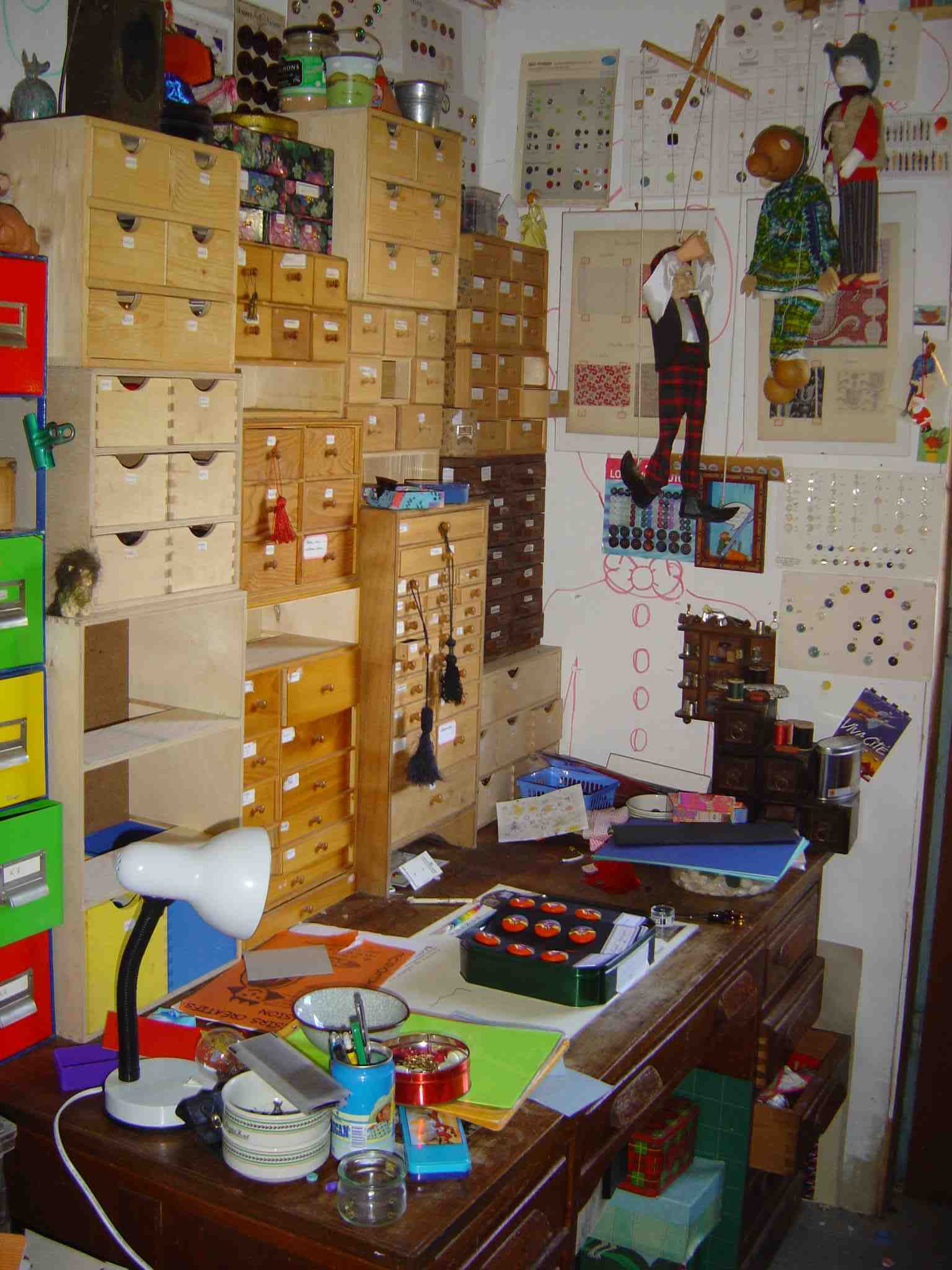 un coin de table, quelques boites pour ranger tous mes petits trésors